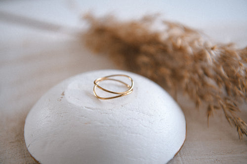 Golden Orbit Ring – Intersecting Lines in Gold Fill