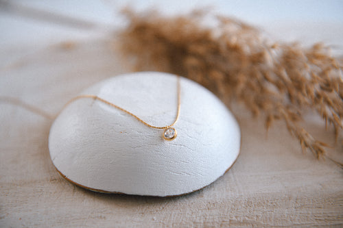 Aurora Gold-Filled Necklace – Crystal Bezel Pendant for Radiant Minimalism