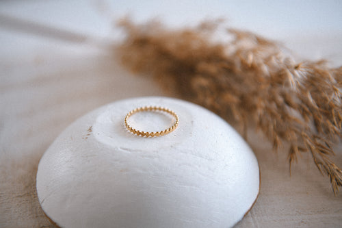 Sunstone Edge – Glimmering Beaded Gold Filled Ring