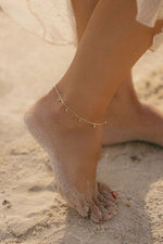 This dainty gold-filled anklet features a 9.5” fixed length and a lightweight feel that’s perfect for everyday wear. Tarnish-resistant and water-friendly, it’s made for summer adventures, barefoot walks, and spontaneous moments.